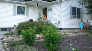 This is the flower garden that she put in last. I think it is two years old, maybe three. It has all bee food, as Carolyn says. The large window to the left is where she is building the studio that will hold her spinning wheel and quilting supplies. I would call Carolyn the Renaissance Woman. She can do it all; cook, can, sew, quilt, knit, garden and so much more. Play the piano, sing... she is so talented. Some of you say that I am an overachiever, I am just trying to keep up with the Murphy's.